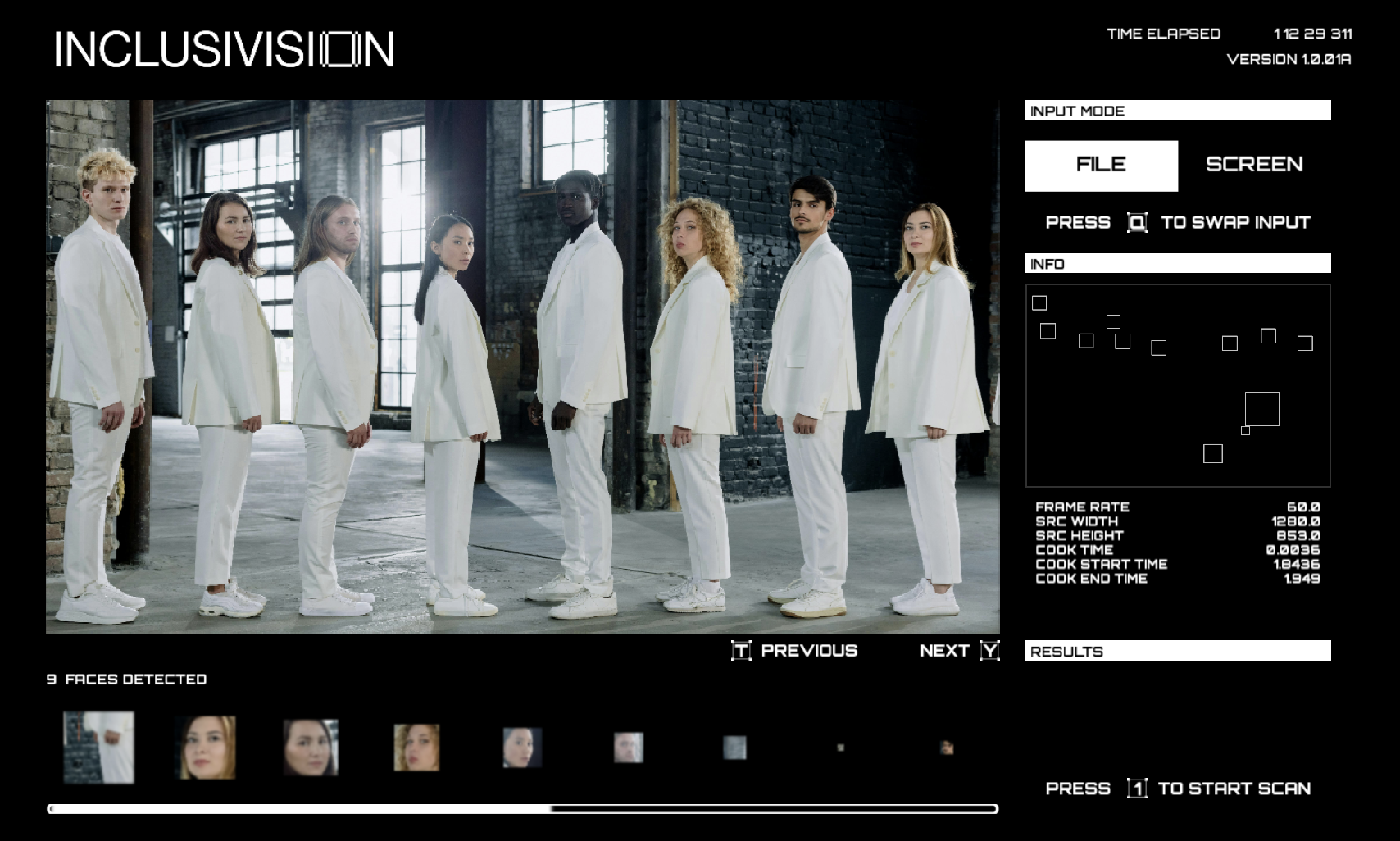 The info section plays a crucial role in the software's functionality. While my main input view is set to a horizontal fit, cropping away the top and bottom portions of portrait images, the scanner still picks up on the cropped sections. Hence, displaying the input resolution serves as a reference if any detected faces extend beyond the main view.